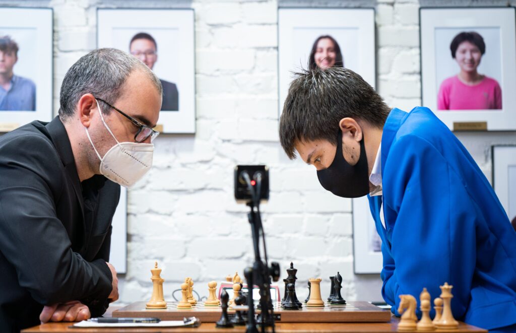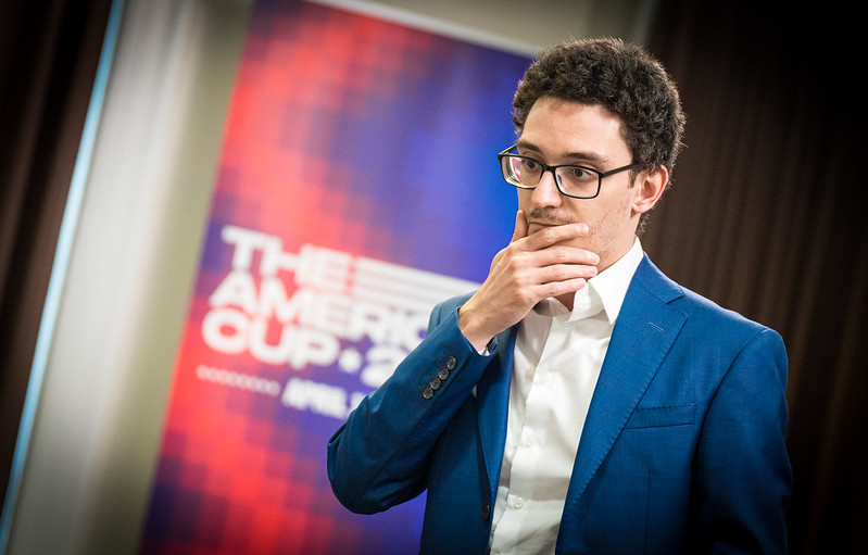 Top seed GM Fabiano Caruana closed the distance to the leaders after winning today’s game against GM Dariusz Swiercz, leaving himself just a half-point behind GM Wesley So, GM Sam Sevian, and GM Alex Lenderman